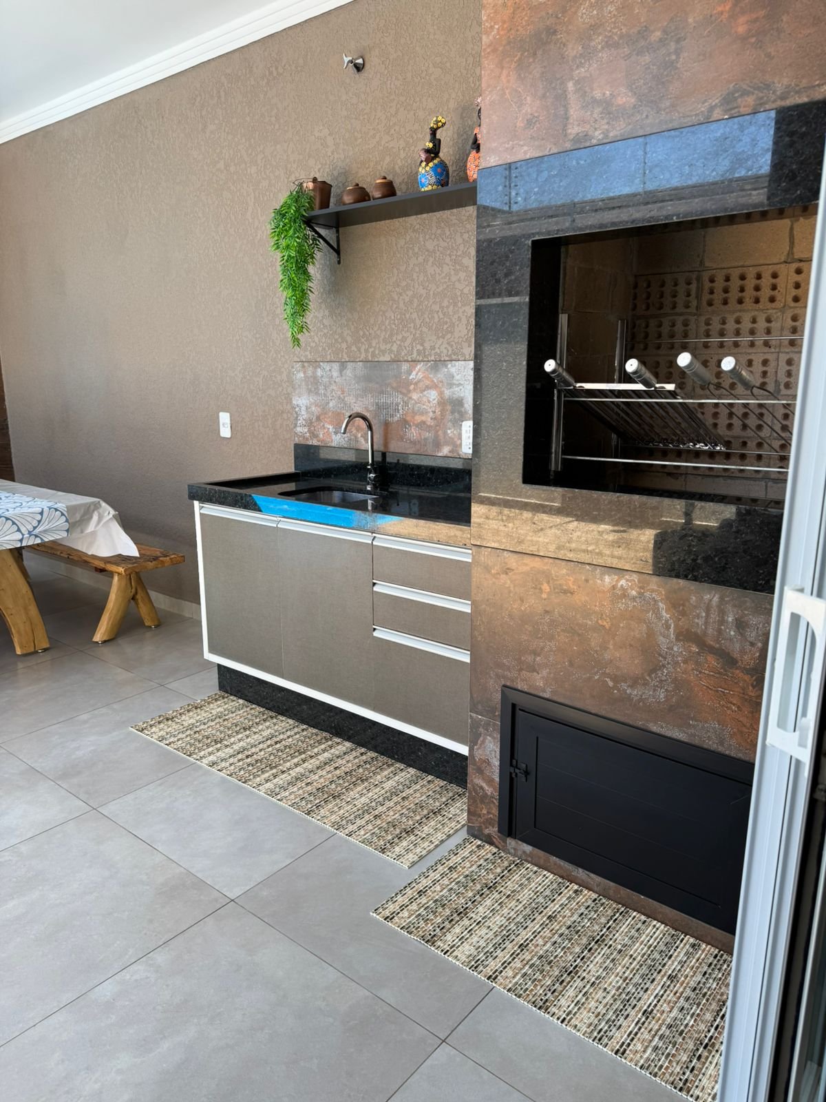 Uma área gourmet aconchegante, pronta para reunir, relaxar e aproveitar deliciosas refeições e fazer aquele bom churrasco.